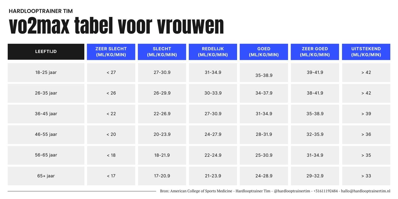Een “goede” VO2max varieert afhankelijk van leeftijd, geslacht, en trainingsniveau. In onderstaande VO2max tabel vind je de waardes voor mannen en vrouwen ingedeeld op leeftijd.